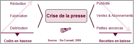 L'année 2009 était celle qui a marqué durablement l'histoire de la presse écrite mondiale. Comme l'avait affirmé en novembre 2008 Eric Scherer, directeur Stratégie et Relations extérieures de l'Agence France Presse aussi appelé AFP, les médias traditionnels traversaient une "perfect storm" aussi dite la tempête parfaite, elle faisait face à la combinaison entre trois facteurs qui sont des handicaps structurels non réglés, une adaptation difficile au numérique et les conséquences de la crise financière. La crise de la presse écrite, que de nombreux spécialistes prédisaient depuis l'avènement d'internet.